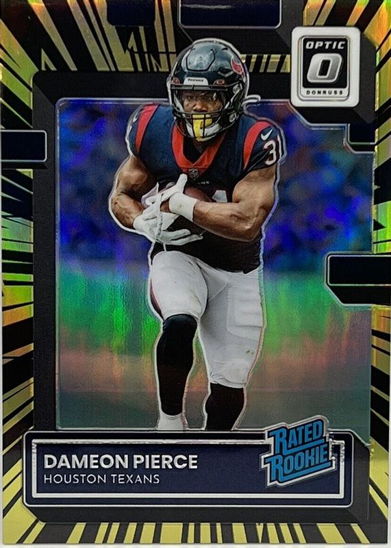 This card is 1 of 74 Dameon Pierce's card variations in the 2022 Optic set being tracked by Sports Card Investor, including Base, Holo, Holo Variation, Pink, and Purple Shock.