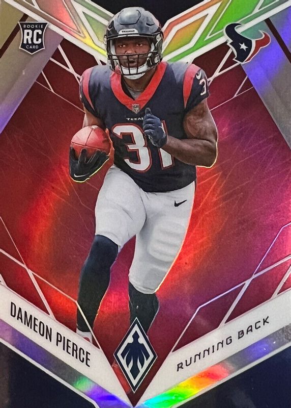 This card is 1 of 28 Dameon Pierce's card variations in the 2022 Phoenix set being tracked by Sports Card Investor, including Base, Color Burst, Onyx (/5), Red Mojo (/10), and Silver.