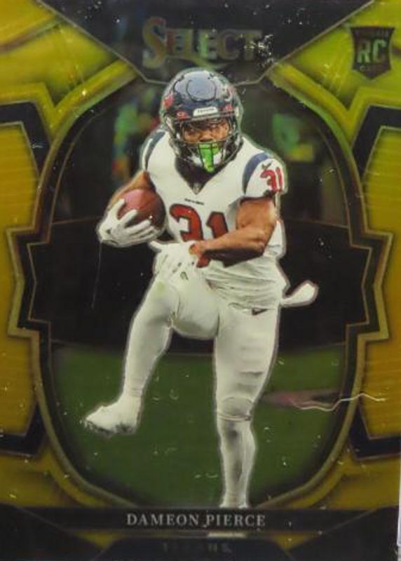 The Dameon Pierce 2022 Select #47 Concourse Gold /10 Rookie card in Raw condition has not changed in price in the last 30 days and was last sold for $10.00 .