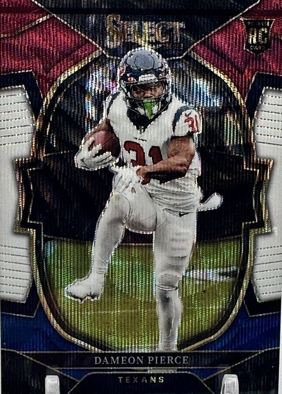 This card is 1 of 162 Dameon Pierce's card variations in the 2022 Select set being tracked by Sports Card Investor, including Club Level, Concourse, Field Level, Suite Level, and Club Level Black & Green Die-Cut.
