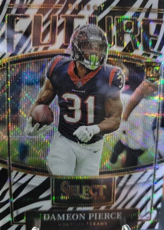 The Dameon Pierce 2022 Select #SF- 13 Select Future - Zebra /(SSP) Rookie card in Raw condition has not changed in price in the last 30 days and was last sold for $11.99 .