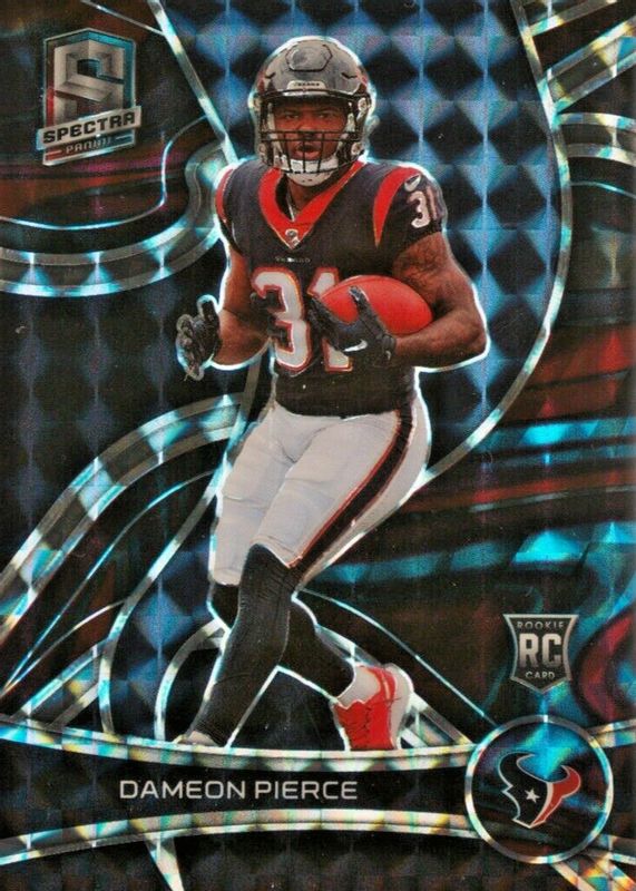 This card is 1 of 56 Dameon Pierce's card variations in the 2022 Spectra set being tracked by Sports Card Investor, including Base, Silver, Celestial /99, Hyper /75, and Neon Blue Die-Cut /50.