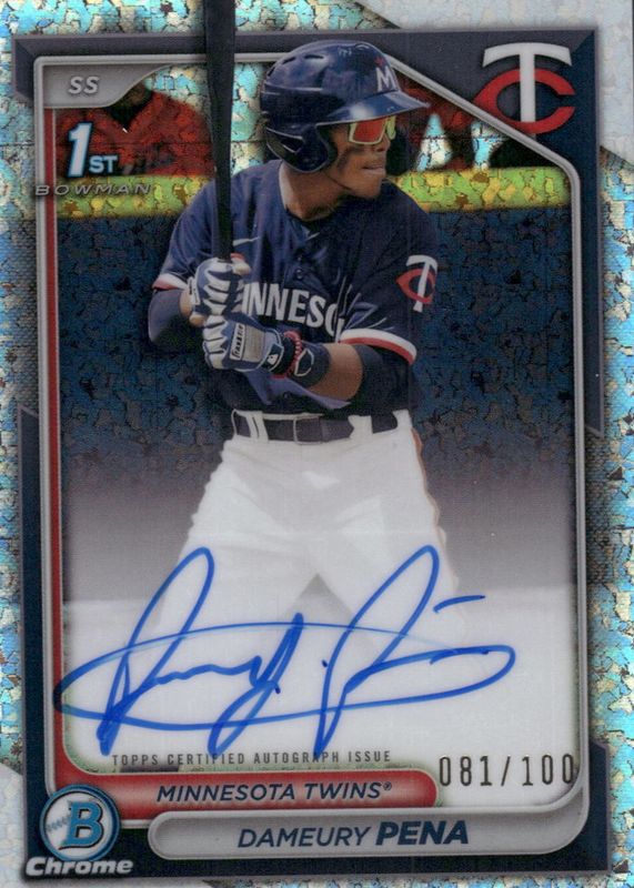2024 Bowman Chrome Dameury Pena Auto Mini Diamond Refractor /100 1st Twins BL2
