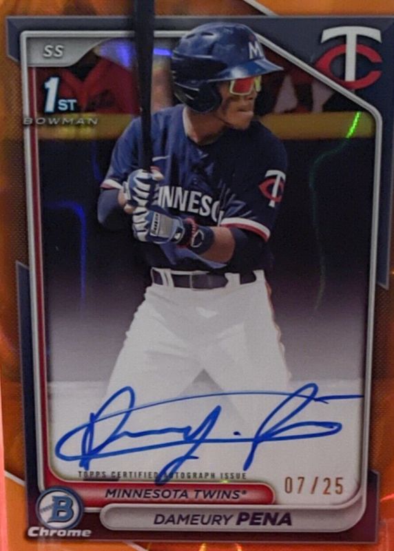 2024 Bowman Chrome Dameury Pena 1st Auto Orange Lava 25/25 Minnesota Twins
