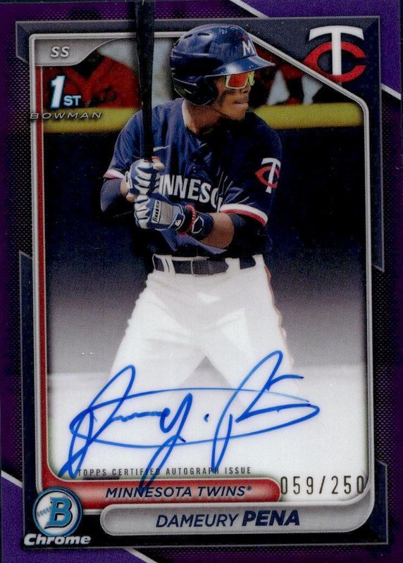 2024 Bowman Chrome Purple Refractor Dameury Pena 1st Auto Twins /250 CPA-DPE