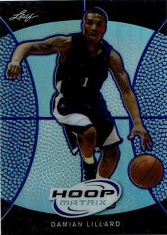 The Damian Lillard 2012 Leaf Metal #HM-DL3 Hoop Matrix Rookie card is 1 of 56 Damian Lillard's card variations in the 2012 Leaf Metal set being tracked by Sports Card Investor, including Base, Holo /50, Holo Blue /25, Holo Green /10, and Holo Red /5.