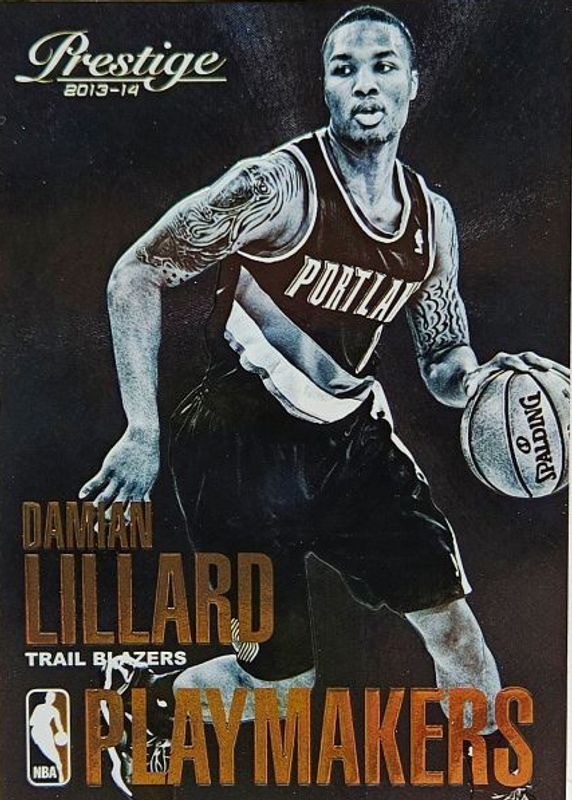 The Damian Lillard 2013 Prestige #12 Playmakers /(SSP) card in Raw condition has not changed in price in the last 30 days and was last sold for $89.99 .
