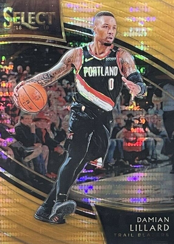 This card is 1 of 34 Damian Lillard's card variations in the 2018 Select set being tracked by Sports Card Investor, including Concourse Scope, Concourse Silver, Concourse Tri-Color, Courtside Silver, and Premier Level Scope.