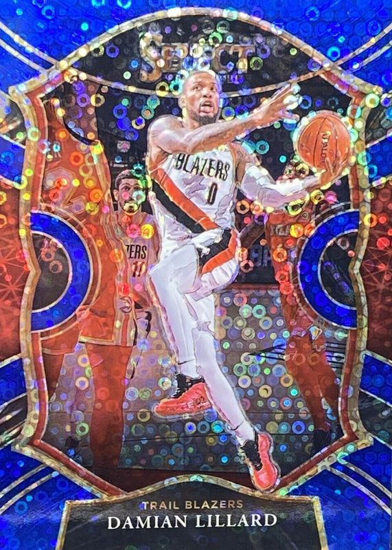 2020-21 Panini Select Damian Lillard Blue Disco Prizm Concourse SSP /25