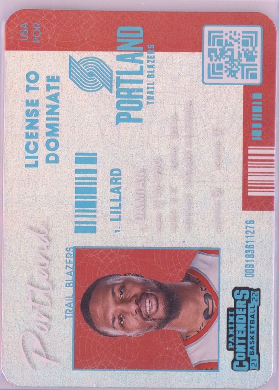 The Damian Lillard 2021 Contenders #21 License to Dominate /(SSP) card in Raw condition has not changed in price in the last 30 days and was last sold for $4.99 .