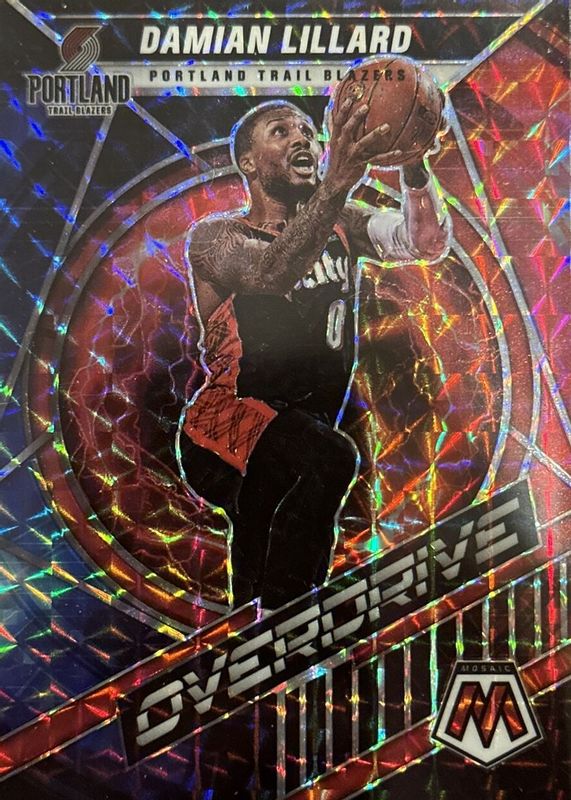 The Damian Lillard 2021 Mosaic #23 Overdrive card in Raw condition has moved up $0.08 (+8.1%) in the last 30 days and was last sold for $1.07 .