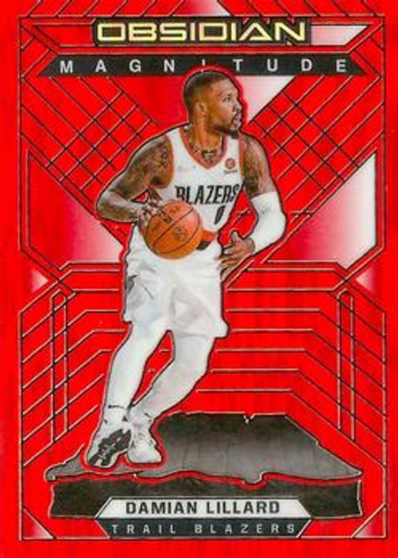 Damian Lillard 2021 Obsidian #4 Magnitude - Electric Etch Red Flood RAW Price Guide