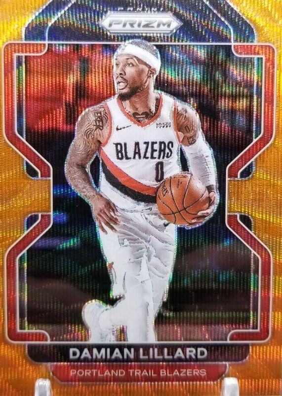 2021-22 Panini Prizm Damian Lillard Orange Wave Prizm 13/60