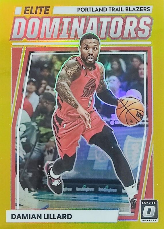 2022-23 Donruss Optic DAMIAN LILLARD Elite Dominators Gold Prizm 1/10