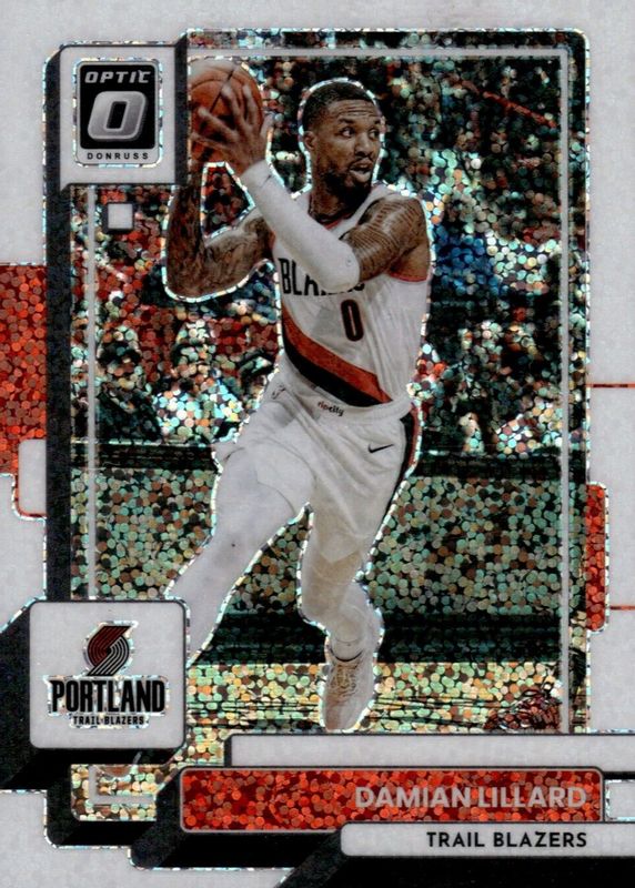 This card is 1 of 46 Damian Lillard's card variations in the 2022 Optic set being tracked by Sports Card Investor, including Choice Dragon /(SSP), Photon /(SSP), Black Velocity /39, Fast Break Pink /25, and Choice Blue Mojo /24.