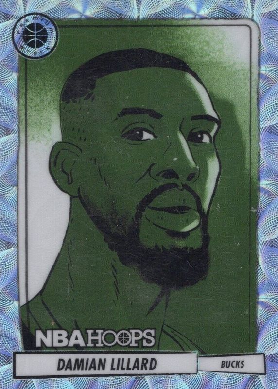 This card is 1 of 4 Damian Lillard's card variations in the 2023 Hoops Premium Stock set being tracked by Sports Card Investor, including High Voltage /(SSP), Retro Net Marvels /(SSP), and Trophy Case /(SSP).
