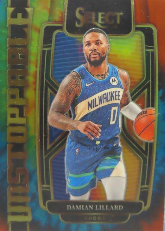 DAMIAN LILLARD 2023-24 SELECT UNSTOPPABLE TIE-DYE PRIZM BUCKS /25 Q1235