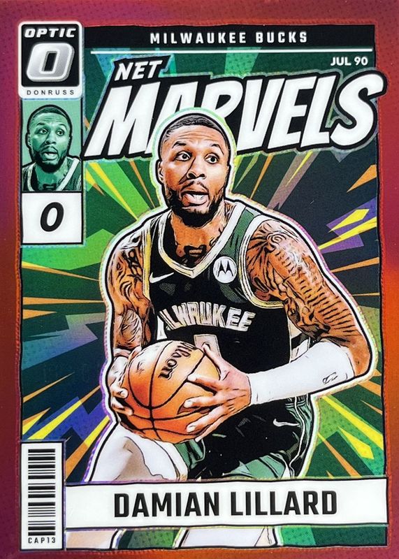 2024 Panini Donruss Optic Damian Lillard Milwaukee Bucks Net Marvels SP Red /99