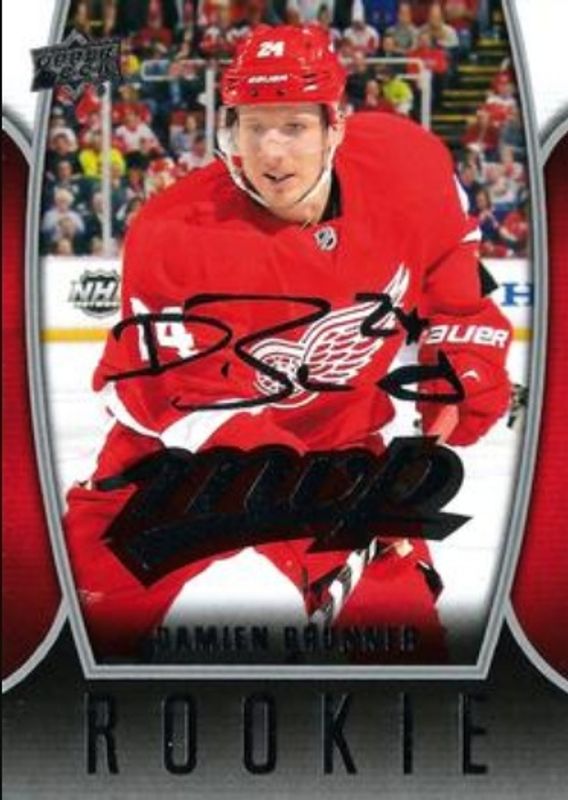 The Damien Brunner 2013 Upper Deck #70 2013 Upper Deck MVP Rookie card is 1 of 14 Damien Brunner's card variations in the 2013 Upper Deck set being tracked by Sports Card Investor, including Young Guns Base, Young Guns Canvas, Young Guns - Acetate, Young Guns - UD Exclusives /100, and Young Guns - UD High Gloss /10.