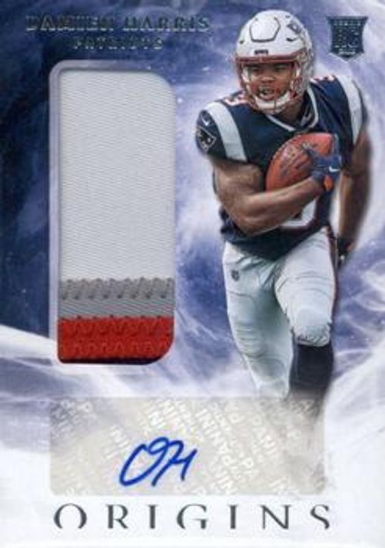 The Damien Harris 2019 Origins #109 Base Rookie card is 1 of 31 Damien Harris' card variations in the 2019 Origins set being tracked by Sports Card Investor, including Red /299, Orange /175, Blue /99, Turquoise /25, and Gold /10.