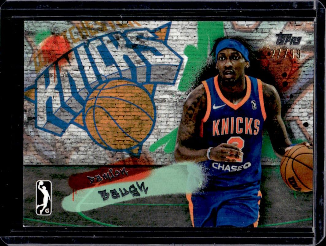 The Damion Baugh 2024 Topps G-League #TL-22 Team Logo - Green /99 card is 1 of 21 Damion Baugh's card variations in the 2024 Topps G-League set being tracked by Sports Card Investor, including Ankle Breaker, Ankle Breaker - Blue, Base Chrome, Base Chrome - Refractor, and Team Logo.