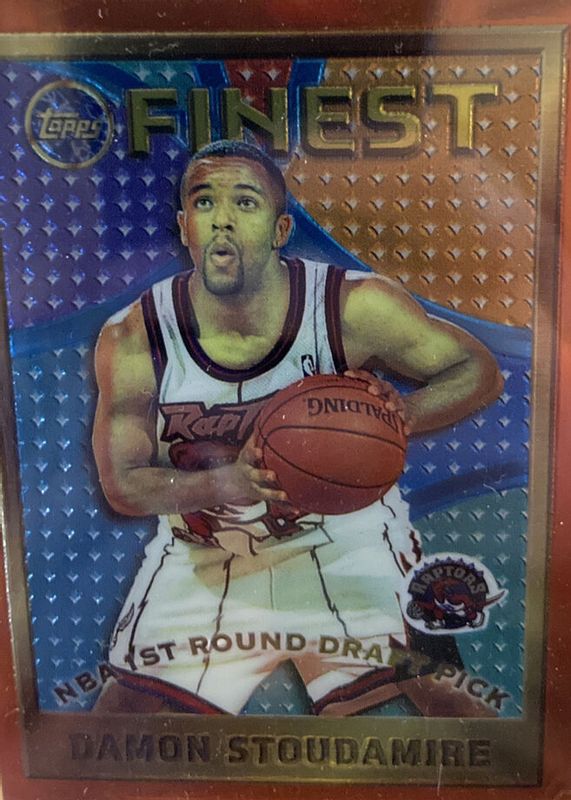 This card is 1 of 9 Damon Stoudamire's card variations in the 1995 Topps Finest set being tracked by Sports Card Investor, including Base, Base (with Coating), Mystery, Mystery - Borderless Gold Refractor, and Mystery - Borderless Silver.