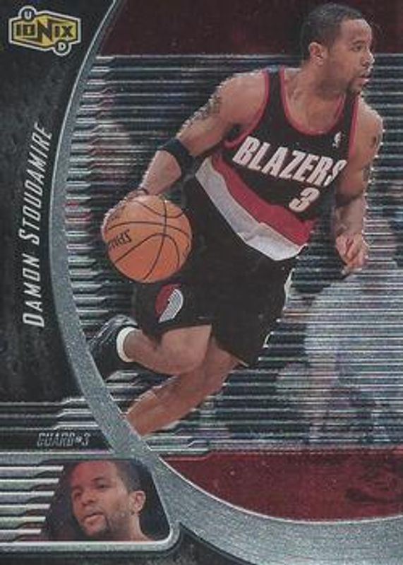 The Damon Stoudamire 1998 Upper Deck Ionix #49 Base card is 1 of 3 Damon Stoudamire's card variations in the 1998 Upper Deck Ionix set being tracked by Sports Card Investor, including Reciprocal /100, and Skyonix.