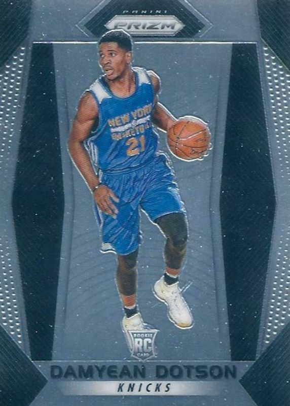 This card is 1 of 30 Damyean Dotson's card variations in the 2017 Prizm set being tracked by Sports Card Investor, including Fast Break, Green, Hyper, Red White Blue, and Ruby Wave.