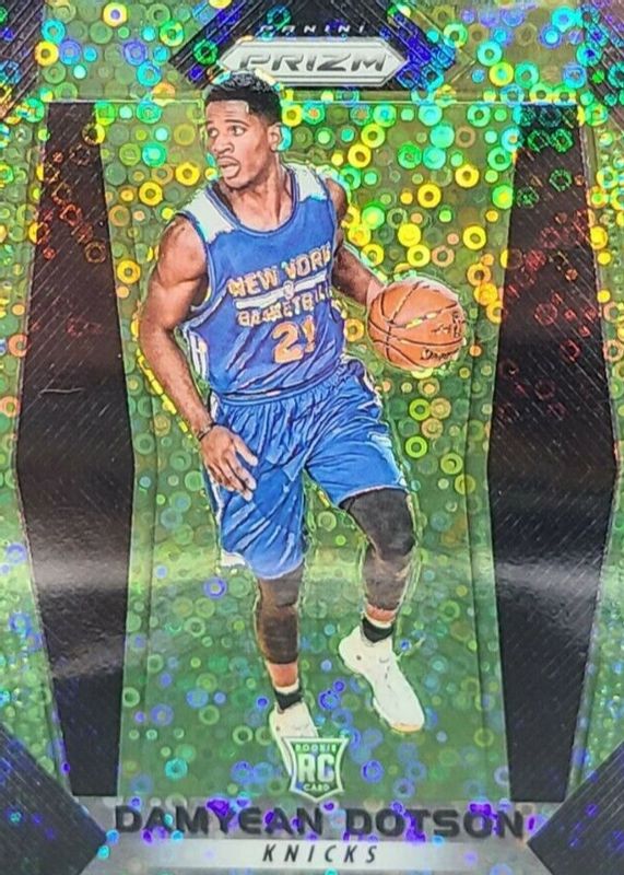 The Damyean Dotson 2017 Prizm #272 Fast Break Neon Green /5 Rookie card in Raw condition has not changed in price in the last 30 days and was last sold for $6.46 .