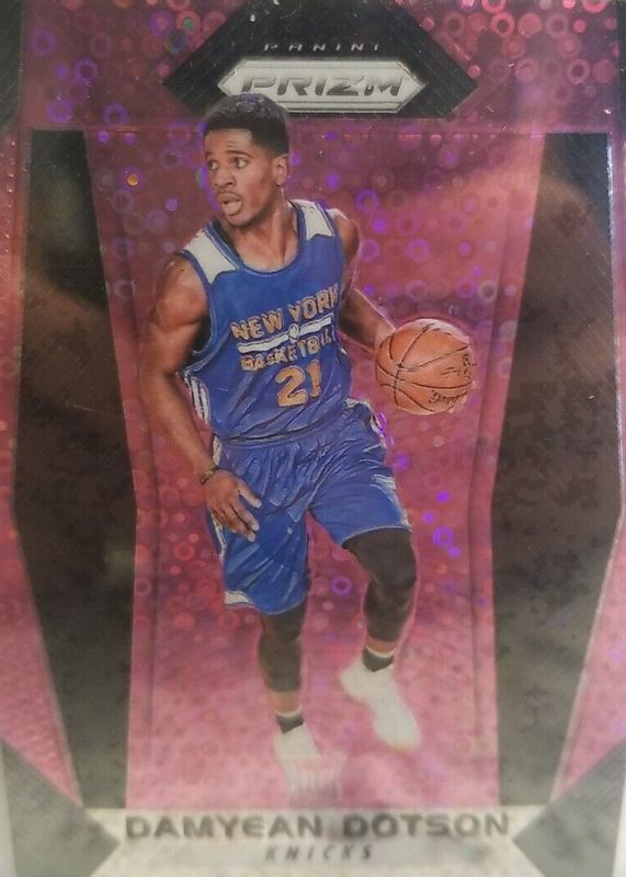 The Damyean Dotson 2017 Prizm #272 Fast Break Pink /50 Rookie card in Raw condition has not changed in price in the last 30 days and was last sold for $6.99 .