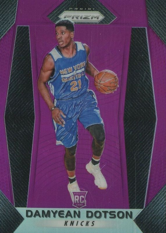 The Damyean Dotson 2017 Prizm #272 Purple /75 Rookie card in Raw condition has not changed in price in the last 30 days and was last sold for $4.45 .