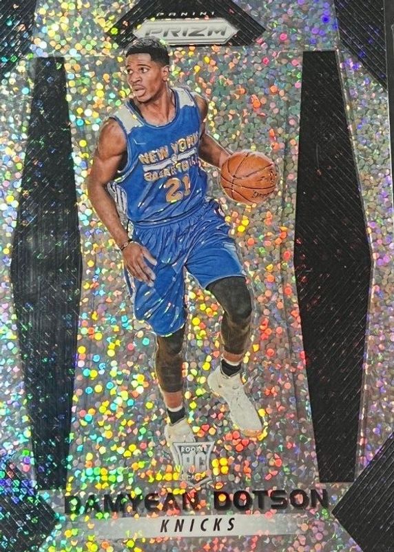 This card is 1 of 30 Damyean Dotson's card variations in the 2017 Prizm set being tracked by Sports Card Investor, including Base, Fast Break, Green, Hyper, and Red White Blue.