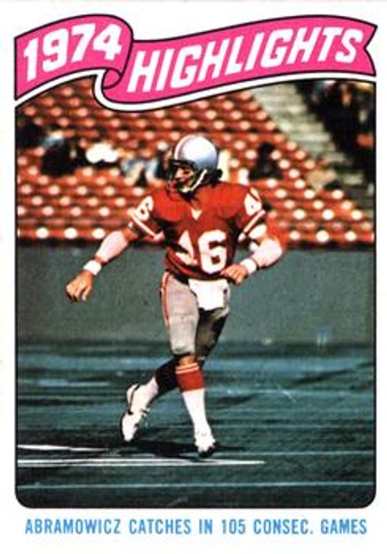 The Dan Abramowicz 1975 Topps #452 Base card is 1 of 3 Dan Abramowicz's card variations in the 1975 Topps set being tracked by Sports Card Investor, including #31 Base, and #32 Base.