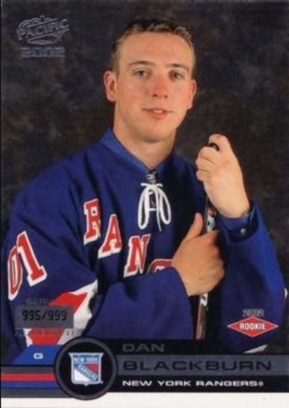 The Dan Blackburn 2001 Pacific #458 Base /500 Rookie card is 1 of 2 Dan Blackburn's card variations in the 2001 Pacific set being tracked by Sports Card Investor, including High Voltage.