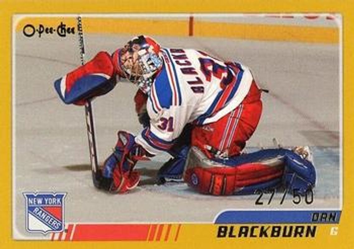 The Dan Blackburn 2003 O-Pee-Chee #178 Gold /50 card is 1 of 4 Dan Blackburn's card variations in the 2003 O-Pee-Chee set being tracked by Sports Card Investor, including Base, Blue /500, and Red /100.