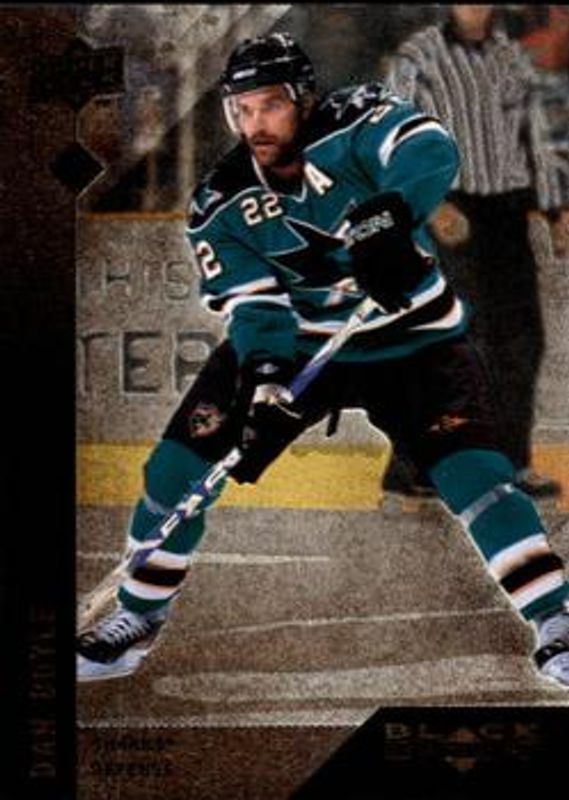 The Dan Boyle 2009 Upper Deck Black Diamond #90 Base card is 1 of 4 Dan Boyle's card variations in the 2009 Upper Deck Black Diamond set being tracked by Sports Card Investor, including Ruby /100, Gold /10, and Onyx /1.