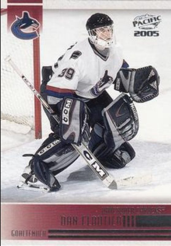 The Dan Cloutier 2004 Pacific #254 Base card is 1 of 5 Dan Cloutier's card variations in the 2004 Pacific set being tracked by Sports Card Investor, including Red, Blue /250, Jerseys /850, and Jerseys - Gold /50.