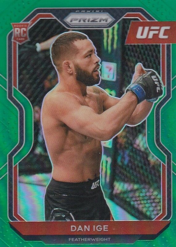 The Dan Ige 2021 Prizm UFC #70 Green Rookie card in Raw condition has not changed in price in the last 30 days and was last sold for $3.55 .