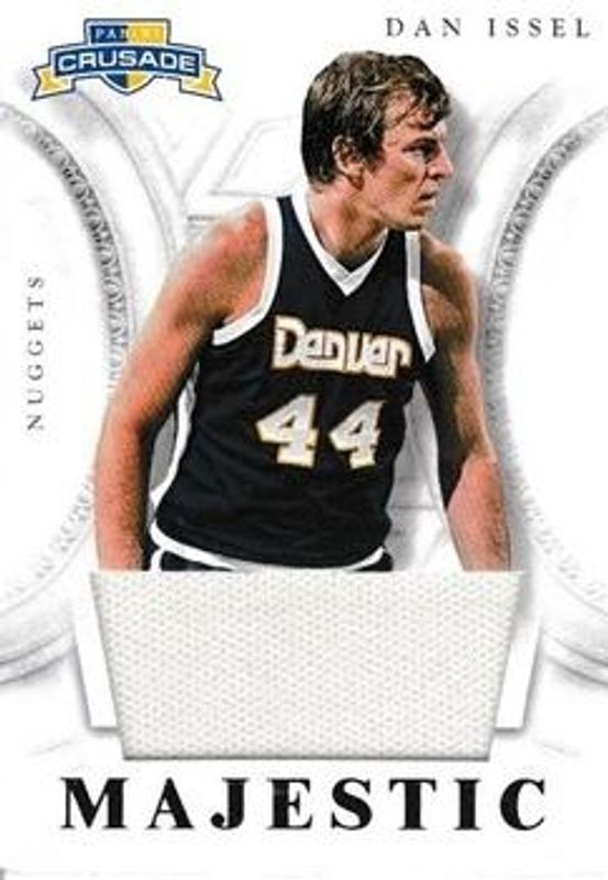 The Dan Issel 2012 Crusade #14 Majestic - Materials card is 1 of 6 Dan Issel's card variations in the 2012 Crusade set being tracked by Sports Card Investor, including Majestic Materials - Prime /5, Majestic Materials - Printing Plates Black /1, Majestic Materials - Printing Plates Cyan /1, Majestic Materials - Printing Plates Magenta /1, and Majestic Materials - Printing Plates Yellow /1.