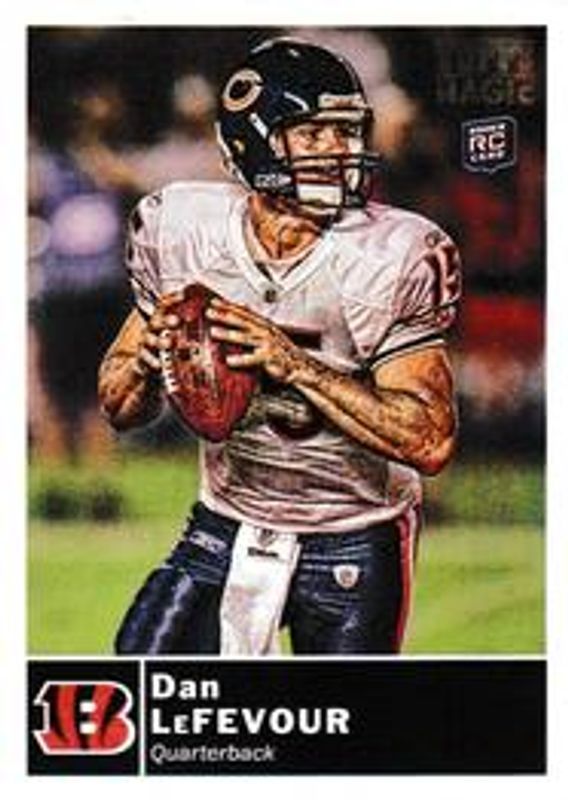 The Dan LeFevour 2010 Topps Magic #121 Mini Rookie card is 1 of 6 Dan LeFevour's card variations in the 2010 Topps Magic set being tracked by Sports Card Investor, including Base, Mini Black, Mini Pigskin 50 /50, Autographs /100, and Autographs - Chrome Refractor /10.