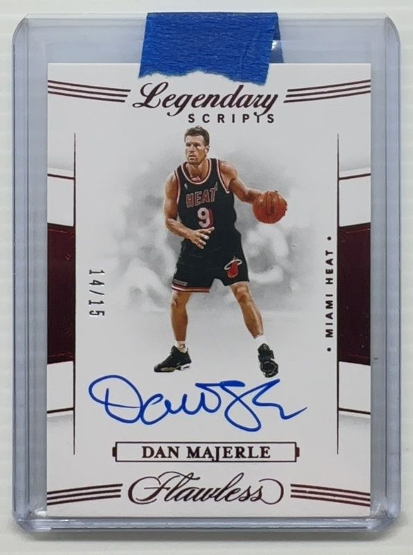 The Dan Majerle 2019 Flawless #LS-DMJ Legendary Scripts - Ruby /15 card is 1 of 18 Dan Majerle's card variations in the 2019 Flawless set being tracked by Sports Card Investor, including Excellence Signatures /25, Legendary Scripts /25, Momentous Autographs /25, Excellence Signatures - Ruby /15, and Momentous Autographs - Ruby /15.