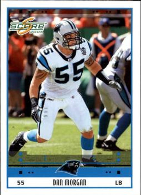 The Dan Morgan 2005 Score #36 Base card is 1 of 6 Dan Morgan's card variations in the 2005 Score set being tracked by Sports Card Investor, including Glossy, Scorecard /599, Adrenaline /399, Revolution /199, and Final Score /17.