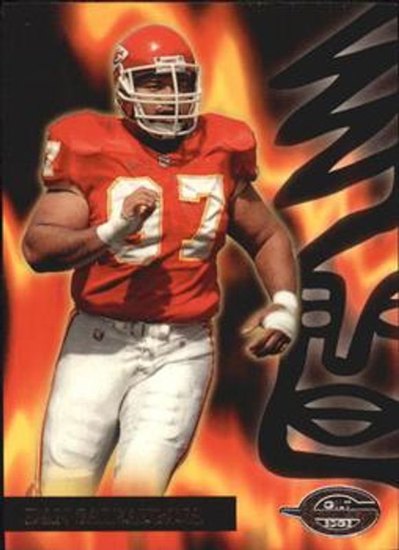 The Dan Saleaumua 1996 Topps Gilt Edge #14 Platinum card is 1 of 2 Dan Saleaumua's card variations in the 1996 Topps Gilt Edge set being tracked by Sports Card Investor, including Base.