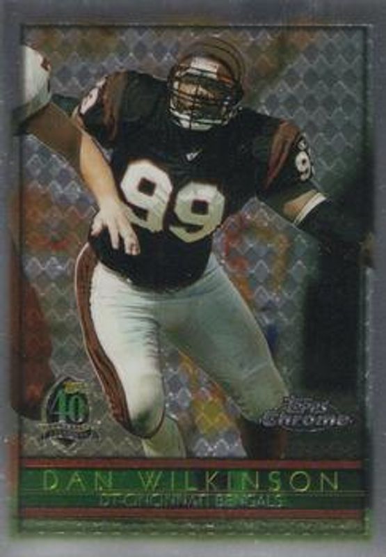 The Dan Wilkinson 1996 Topps Chrome #34 Base card is 1 of 2 Dan Wilkinson's card variations in the 1996 Topps Chrome set being tracked by Sports Card Investor, including Refractor.