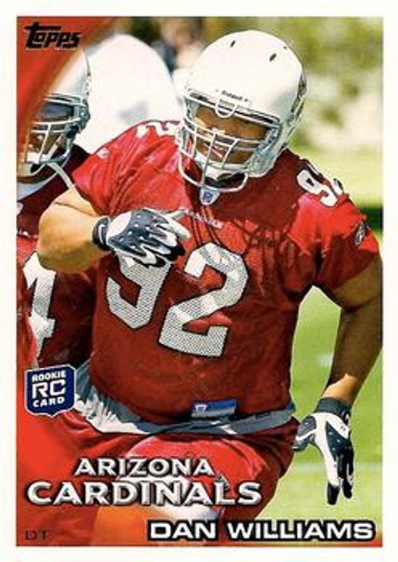 The Dan Williams 2010 Topps #263 Base Rookie card is 1 of 9 Dan Williams' card variations in the 2010 Topps set being tracked by Sports Card Investor, including Gold /2010, Blue /349, Black /55, Platinum /1, and Printing Plates Black /1.