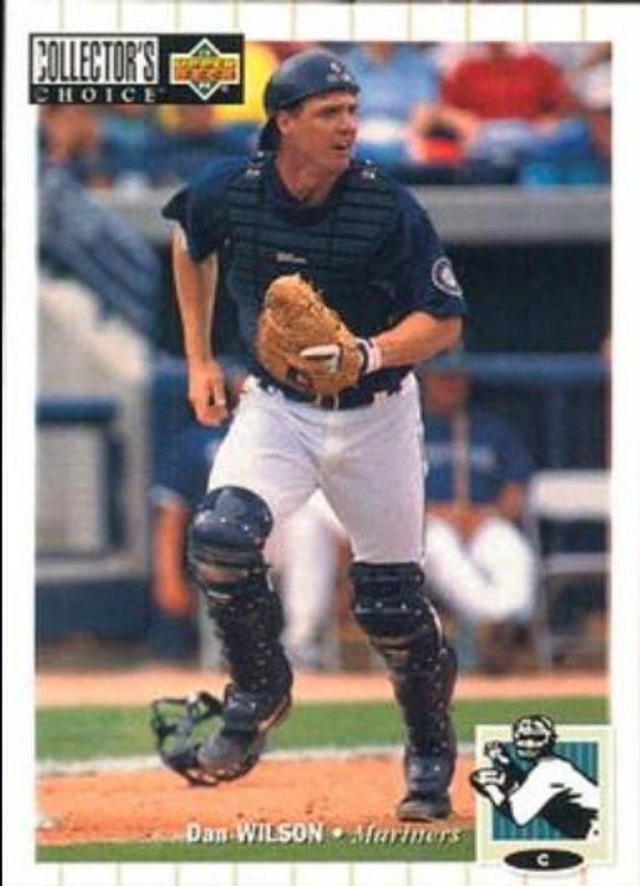 The Dan Wilson 1994 Upper Deck Collector's Choice #547 Base card is 1 of 3 Dan Wilson's card variations in the 1994 Upper Deck Collector's Choice set being tracked by Sports Card Investor, including Gold Signatures, and Silver Signatures.