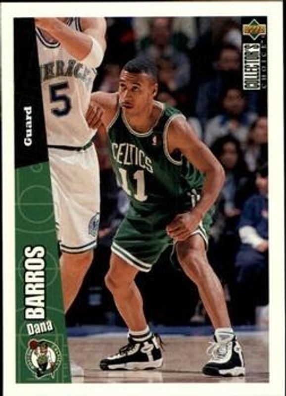 The Dana Barros 1996 Upper Deck Collector's Choice Italian #7 Base card is 1 of 2 Dana Barros' card variations in the 1996 Upper Deck Collector's Choice Italian set being tracked by Sports Card Investor, including Super Action Stick 'Ums.