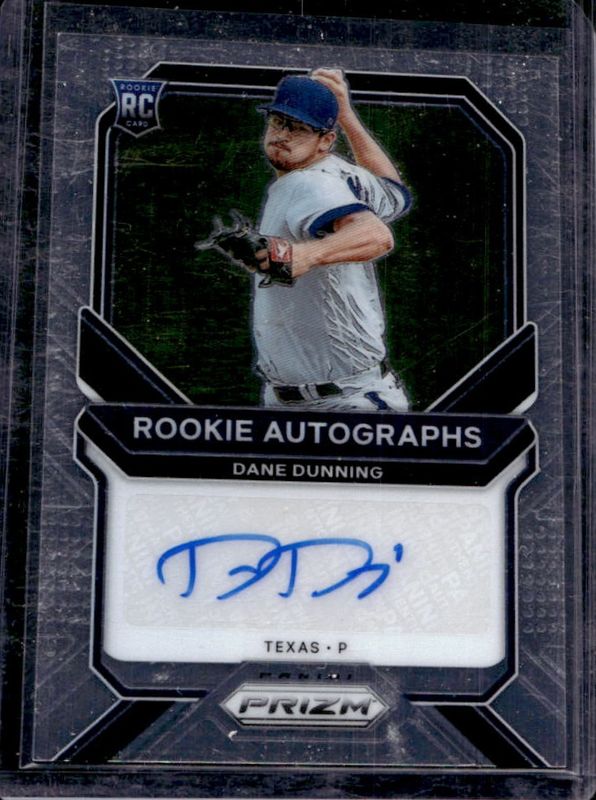 The Dane Dunning 2021 Prizm #RA-DD Rookie Autographs card is 1 of 70 Dane Dunning's card variations in the 2021 Prizm set being tracked by Sports Card Investor, including Base, Blue, Blue Velocity, Carolina Blue, and Cosmic Haze.