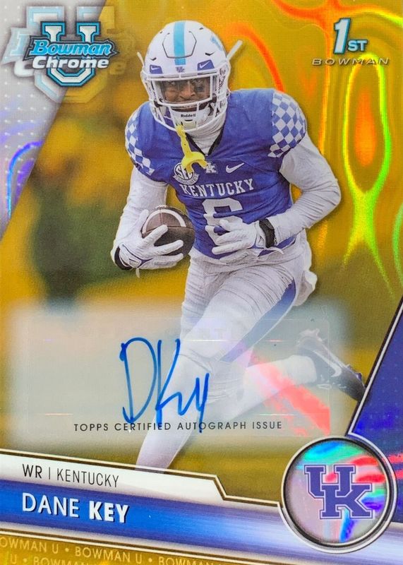 2023 Bowman Chrome U Football Dane Key Gold Lava Refractor 1st Auto #d/50