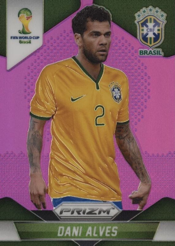This card is 1 of 12 Dani Alves' card variations in the 2014 Prizm World Cup set being tracked by Sports Card Investor, including Base, Blue & Red Wave, Red White Blue Power Plaid, Silver, and Yellow & Red Pulsar.